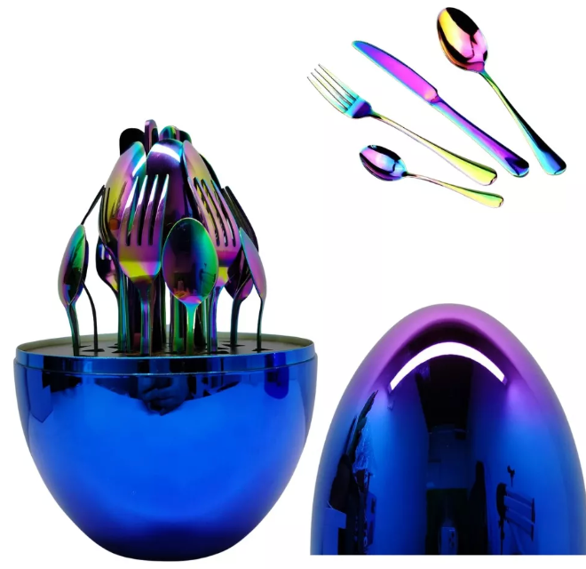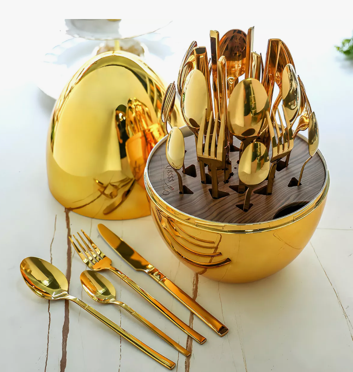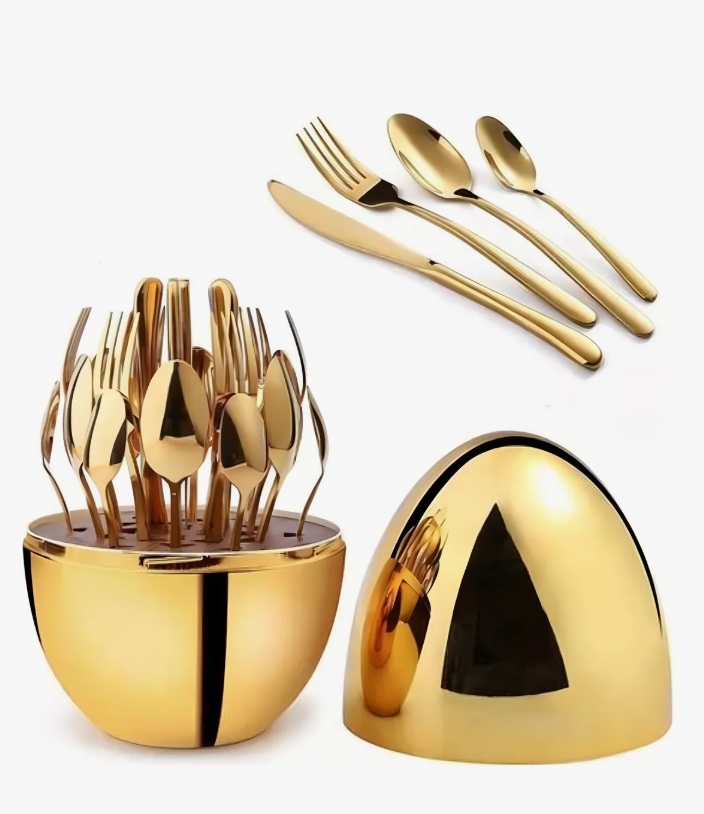 Juego de Cubiertos 24pcs Acero Inoxidable Gold con Estuche en Forma de Huevo